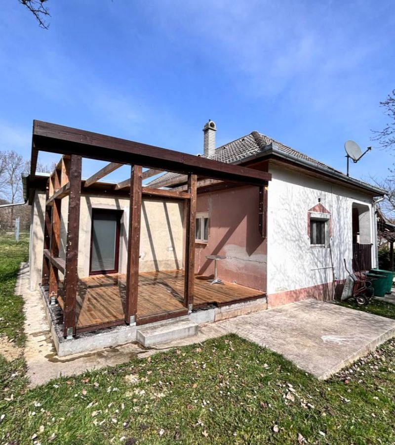 - Fedett terasz + pergola szőlővel befuttatva