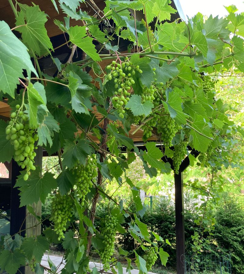 Überdachte Terrasse + Pergola mit Weinbewuchs